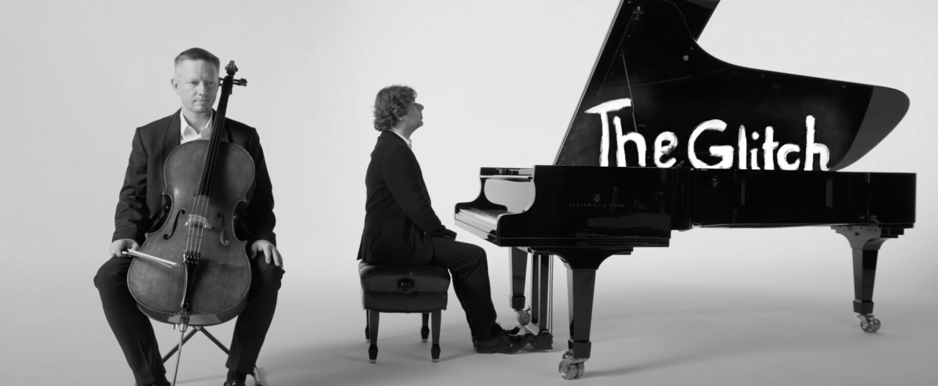 A cellist and a pianist, each poised with their instruments. The camera draws closer to the musicians just before they begin to play. They exchange a glance, signaling their readiness to begin.