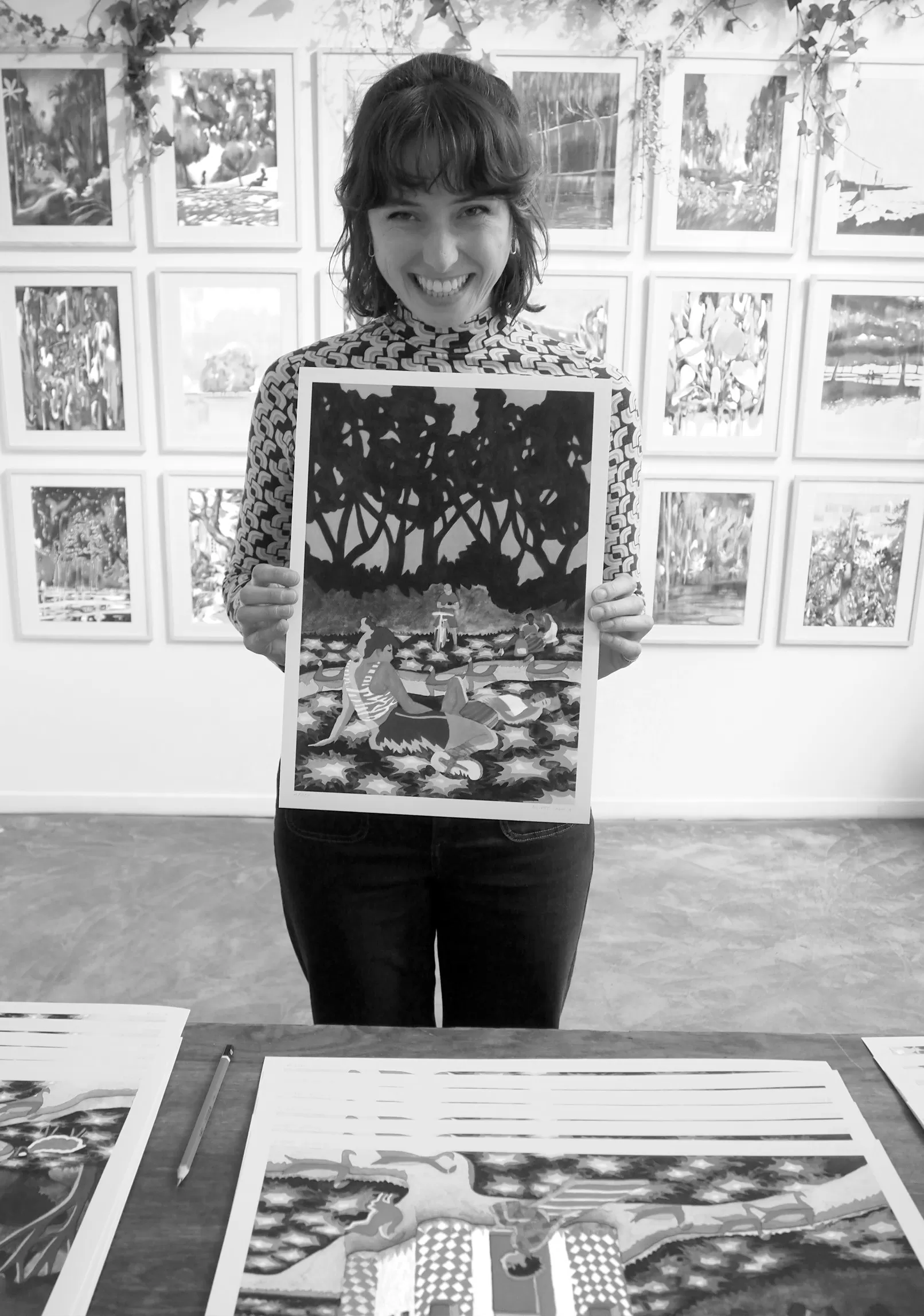 Appassionata di racconti, storie fantastiche e poesia, Juliette Laboria ha studiato cinema d’animazione per 5 anni all’Arts Décoratifs de Paris. Esplora il confine labile tra realtà e immaginazione attraverso la scrittura e immagini fisse o animate dai colori vivaci. I suoi soggetti preferiti rimandano all’estate, all’infanzia e al mondo onirico, con la vita in tutte le sue forme al centro. Oggi lavora sia nell’animazione che nell’illustrazione. Nel tempo libero, tiene un album da disegno che alimenta con ritratti scattati sul posto e scene di vita. Cerca di trascrivere i piccoli dettagli della vita quotidiana, fusi nel paesaggio ma comunque ricchi di significato e importanza, e di far percepire alle persone i materiali, le pelli, il calore, la luce, la morbidezza.