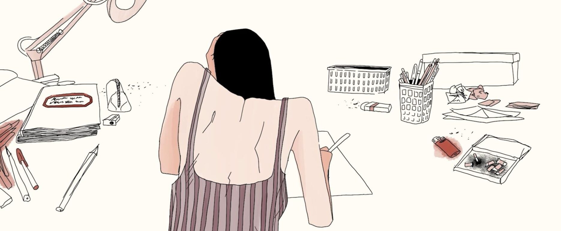 Una ragazza che disegna inizia ad avvertire un forte dolore alla schiena e cerca di alleviarlo allungandosi. Nonostante i suoi sforzi, il dolore non si placa e la sua frustrazione inizia a crescere. I suoi movimenti diventano grotteschi e più brutali, e il suo corpo si fa sempre più teso. Quando il dolore continua a persistere, la ragazza ha un crollo emotivo. Completamente distrutta, torna a sedersi al tavolo.